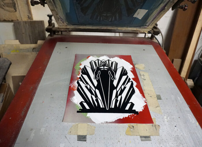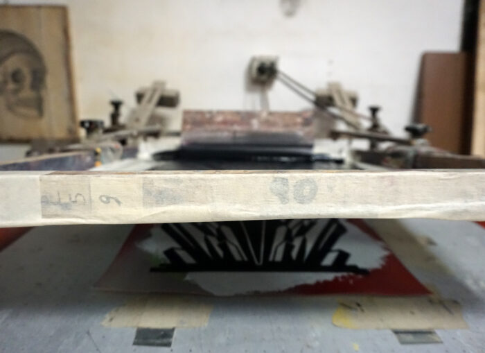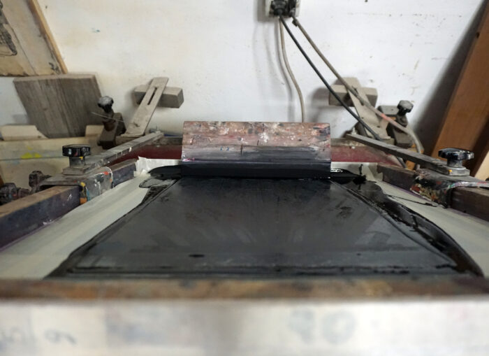 Tecnica: Serigrafia + painting manuale con rullo, schizzi d’inchiostro e spray